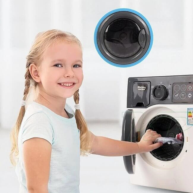 Mosd ki a babaruhákat a mosógépben! A Tegole Mosógép pontosan úgy működik mint amit a felnőttek használnak, forgódobos, programozható játék mosógép érintő panellel, nyitható ajtóval, fény és hangjelzéssel