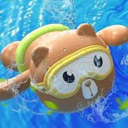 Vízben úszó maci fürdőjáték! A Vízben úszó maci egy felhúzhatós fürdőjáték babáknak, a maci első lábai forognak, így a víz felszínén lebegve tud úszni ami élvezetessé teszi a fürdést a babáknak